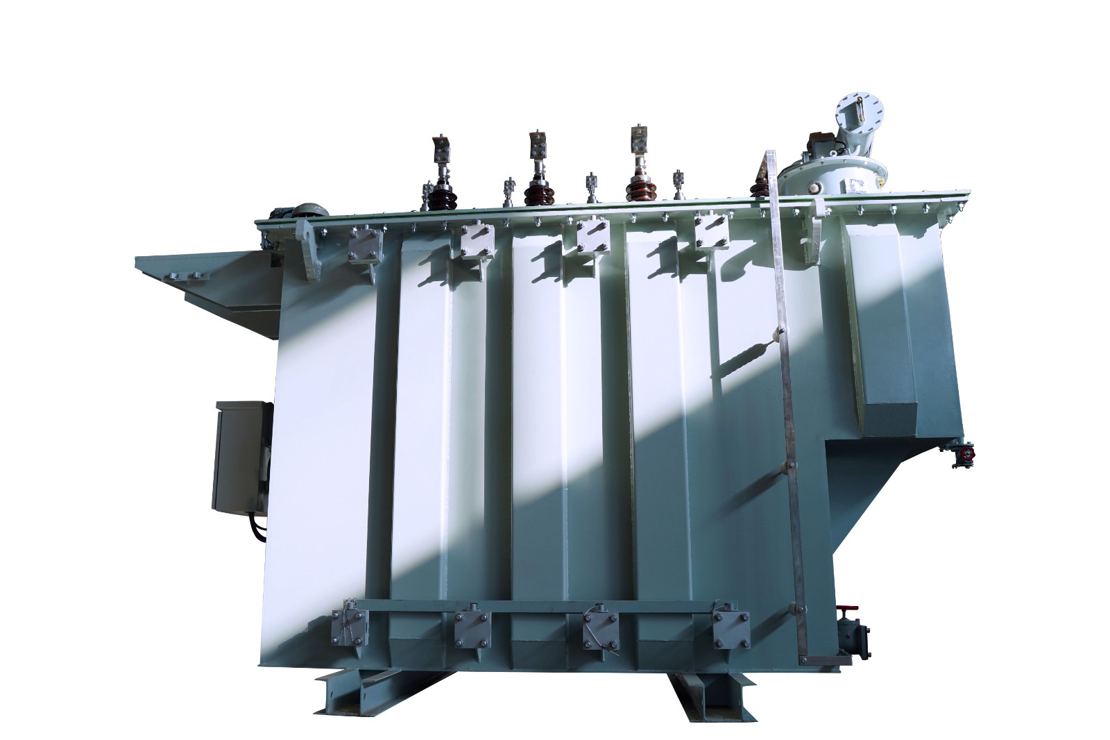 可在一次側(cè)借助于有載調(diào)壓開(kāi)關(guān)在調(diào)壓范圍內(nèi)調(diào)整電壓,以保證輸出電壓的穩(wěn)定性,35KV級(jí)6300kVA以上變壓器采用折板油箱,大大加強(qiáng)了油箱機(jī)械強(qiáng)度,減少焊縫,提高了外觀質(zhì)量。